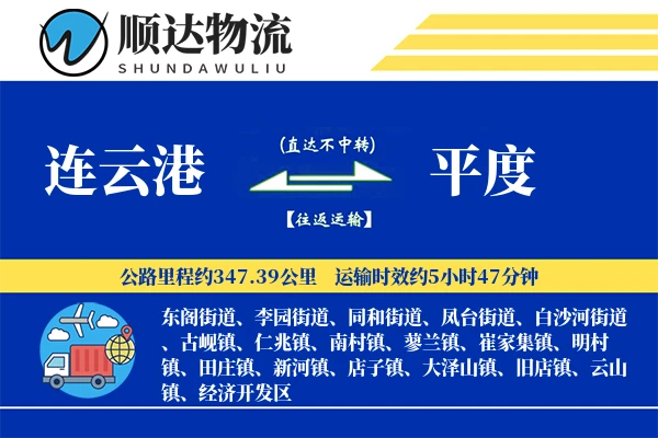 2025-08-15 7浏览顺邦物流提供连云港至平度直达物流专线,全程约347.39公里,支持整车、零担运输,价格透明,2-3天高效送达。覆盖连云港全境及平度东阁街道、李园街道、同和街道、凤台街道、白沙河街道、古岘镇、仁兆镇、南村镇、蓼兰镇、崔家集镇、明村镇、田庄镇、新河镇、店子镇、大泽山镇、旧店镇、云山镇、经济开发区等区域,15立方以上免费送货,专业车队保障货物安全,支持回程车调用降低运费成本。