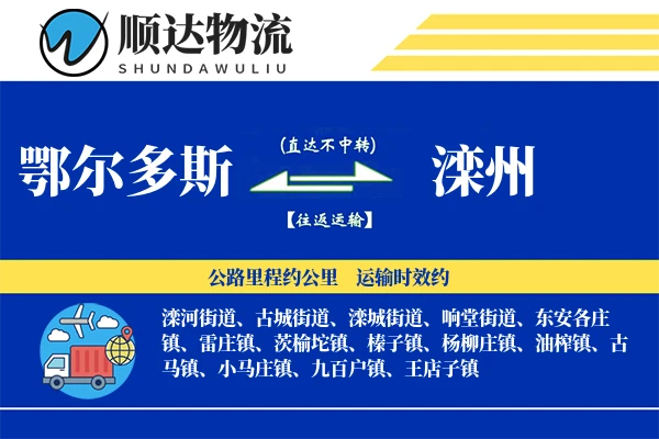 顺邦物流提供鄂尔多斯至滦州直达物流专线,全程约公里,支持整车、零担运输,价格透明,1-2天高效送达。覆盖鄂尔多斯全境及滦州滦河街道、古城街道、滦城街道、响堂街道、东安各庄镇、雷庄镇、茨榆坨镇、榛子镇、杨柳庄镇、油榨镇、古马镇、小马庄镇、九百户镇、王店子镇等区域,15立方以上免费送货,专业车队保障货物安全,支持回程车调用降低运费成本。