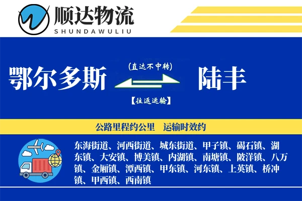 顺邦物流提供鄂尔多斯至陆丰直达物流专线,全程约公里,支持整车、零担运输,价格透明,1-2天高效送达。覆盖鄂尔多斯全境及陆丰东海街道、河西街道、城东街道、甲子镇、碣石镇、湖东镇、大安镇、博美镇、内湖镇、南塘镇、陂洋镇、八万镇、金厢镇、潭西镇、甲东镇、河东镇、上英镇、桥冲镇、甲西镇、西南镇等区域,15立方以上免费送货,专业车队保障货物安全,支持回程车调用降低运费成本。