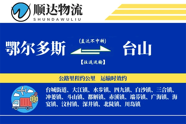 顺邦物流提供鄂尔多斯至台山直达物流专线,全程约公里,支持整车、零担运输,价格透明,1-2天高效送达。覆盖鄂尔多斯全境及台山台城街道、大江镇、水步镇、四九镇、白沙镇、三合镇、冲蒌镇、斗山镇、都斛镇、赤溪镇、端芬镇、广海镇、海宴镇、汶村镇、深井镇、北陡镇、川岛镇等区域,15立方以上免费送货,专业车队保障货物安全,支持回程车调用降低运费成本。
