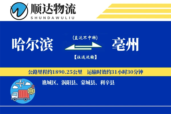 哈尔滨到亳州物流公司-零担运输专线「限时达服务」