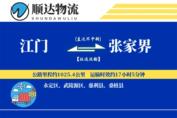 顺邦物流提供江门至张家界直达物流专线,全程约1025.4公里,支持整车、零担运输,价格透明,2-3天高效送达。覆盖江门全境及张家界永定区、武陵源区、慈利县、桑植县等区域,15立方以上免费送货,专业车队保障货物安全,支持回程车调用降低运费成本。
