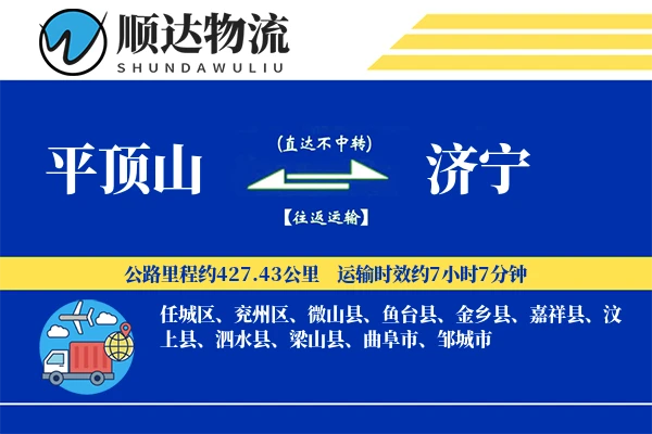 顺邦物流提供平顶山至济宁直达物流专线,全程约427.43公里,支持整车、零担运输,价格透明,2-3天高效送达。覆盖平顶山全境及济宁任城区、兖州区、微山县、鱼台县、金乡县、嘉祥县、汶上县、泗水县、梁山县、曲阜市、邹城市等区域,15立方以上免费送货,专业车队保障货物安全,支持回程车调用降低运费成本。