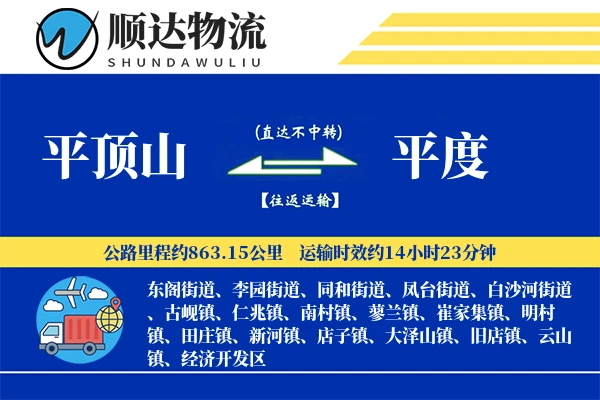 顺邦物流提供平顶山至平度直达物流专线,全程约863.15公里,支持整车、零担运输,价格透明,2-3天高效送达。覆盖平顶山全境及平度东阁街道、李园街道、同和街道、凤台街道、白沙河街道、古岘镇、仁兆镇、南村镇、蓼兰镇、崔家集镇、明村镇、田庄镇、新河镇、店子镇、大泽山镇、旧店镇、云山镇、经济开发区等区域,15立方以上免费送货,专业车队保障货物安全,支持回程车调用降低运费成本。
