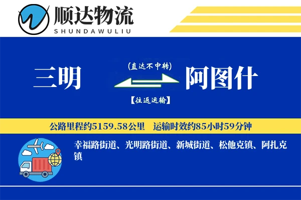 顺邦物流提供三明至阿图什直达物流专线,全程约5159.58公里,支持整车、零担运输,价格透明,5-6天高效送达。覆盖三明全境及阿图什幸福路街道、光明路街道、新城街道、松他克镇、阿扎克镇等区域,15立方以上免费送货,专业车队保障货物安全,支持回程车调用降低运费成本。