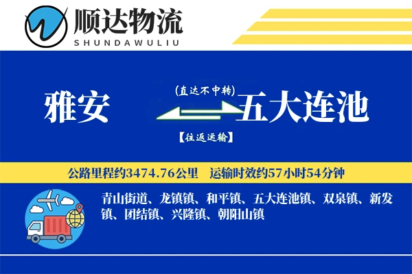 雅安到五大连池物流专线是顺达物流公司提供的优质直达货运服务,全程约3474.76公里,途经S8成名高速, S1成万高速, G5京昆高速, G3002西安绕城高速, G1京哈高速, G2501长春绕城高速, S15绥北高速, S12伊齐高速等多条主干道,运输时效一般为4-5天。服务范围覆盖雅安全境(如雨城区、名山区、荥经县、汉源县、石棉县、天全县、芦山县、宝兴县等)及五大连池主要区域(青山街道、龙镇镇、和平镇、五大连池镇、双泉镇、新发镇、团结镇、兴隆镇、朝阳山镇等),15立方或5吨以上货物可享免费送货,不足则需加收送货费。运输价格根据货物类型和运输方式浮动,零担运输中重货参考价940-1140元/吨,轻货270-310元/立方,整车运输费用按车型及货量计算,具体报价需结合货物性质、季节等因素与物流公司确认。