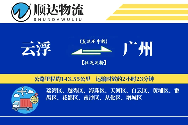 顺邦物流提供云浮至广州直达物流专线,全程约143.55公里,支持整车、零担运输,价格透明,2-3天高效送达。覆盖云浮全境及广州荔湾区、越秀区、海珠区、天河区、白云区、黄埔区、番禺区、花都区、南沙区、从化区、增城区等区域,15立方以上免费送货,专业车队保障货物安全,支持回程车调用降低运费成本。